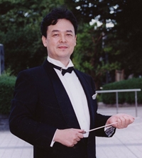 新宿区吹奏楽団では、2002年4月の第13回定期演奏会で客演指揮者を務め、同年8月より音楽監督・常任指揮者に就任。